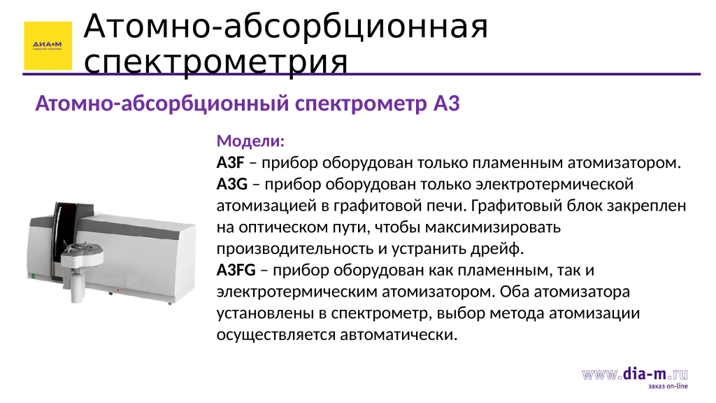 Для элементного анализа «Диаэм» предлагает атомно-абсорбционный спектрометр Persee A3.