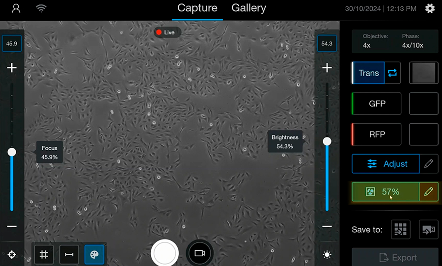 - автоматическое измерение степени конфлюэнтности в реальном времени;