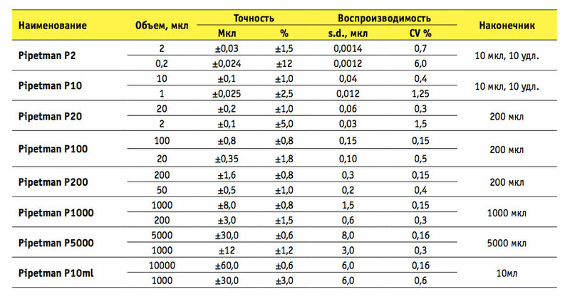 В этой серии выпускаются пипетки переменного объема от 0,2 до 10000 мкл (8 диапазонов объемов):