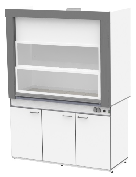 Шкаф вытяжной общего назначения, ширина 150 см, корпус – ЛДСП, столешница – цельная керамика Fridurit, 1 тумба, ЛОиП