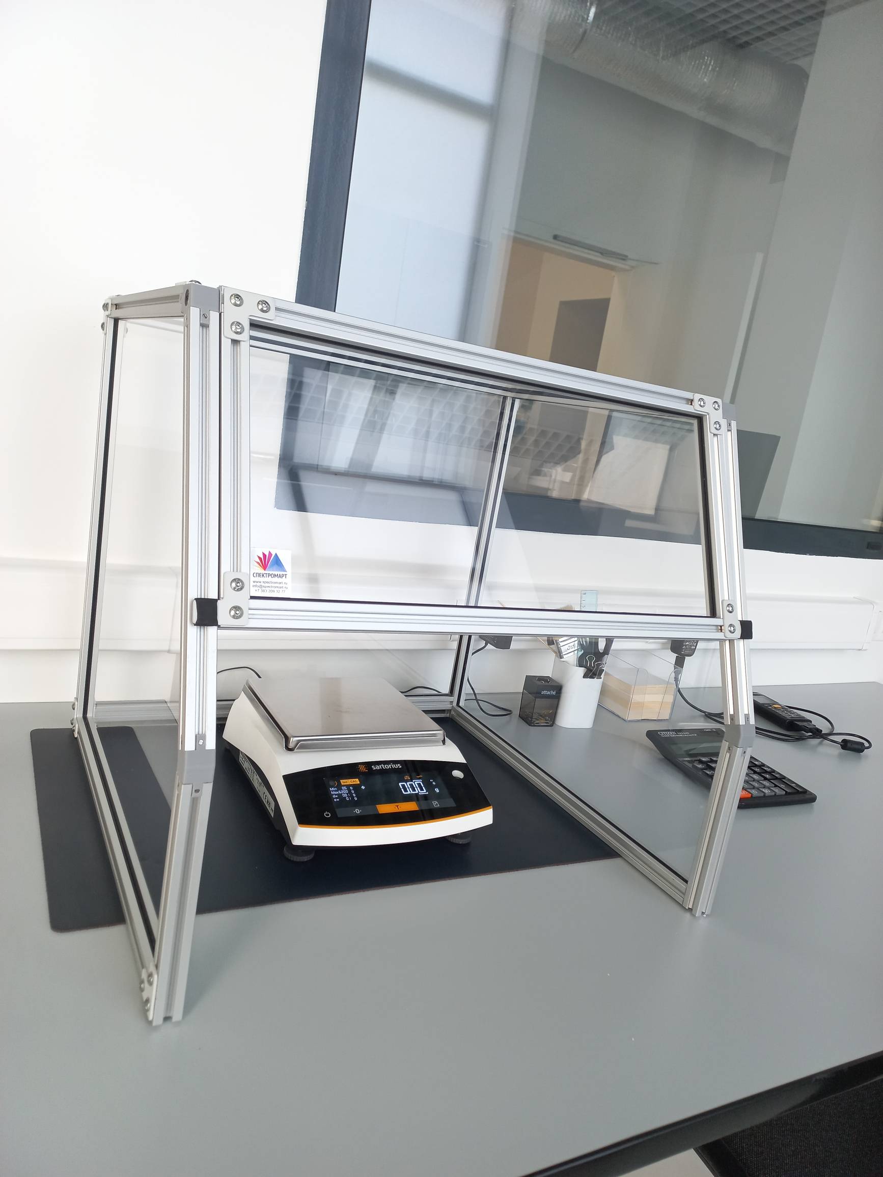 Используется при эксплуатации аналитических микровесов, имеющих очень маленькую дискретность, когда погрешность в измерении может привнести даже движение воздушных потоков, вызванное, например, сквозняками. Для предотвращения этого используются ветрозащитные кожухи, полностью накрывающие весовую платформу с измеряемым объектом.