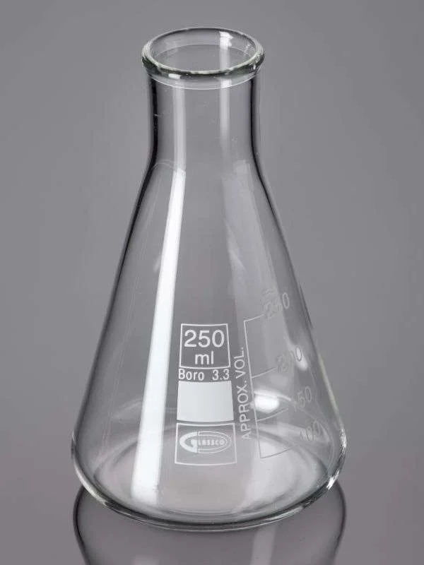 Колбы Эрленмейера Glassco — это конические лабораторные колбы с плоским дном, изготовленные из ударопрочного боросиликатного или из химически стойкого кварцевого стекла. Широко применимые, универсальные емкости считаются одним из самых востребованных типов лабораторной посуды.