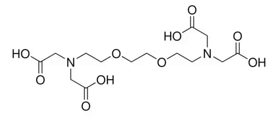 Этиленгликольтетрауксусная кислота (ЭГТА) может хелатировать кальций (Ca₂+) в соотношении 1:1. Она служит антикоагулянтом при растворении в концентрации 1 г на 100 мл крови. ЭГТА может предотвращать везикулярное высвобождение в нанодомене одиночных каналов Ca₂+. Этот хелатор металла может ингибировать активность псевдолизина.