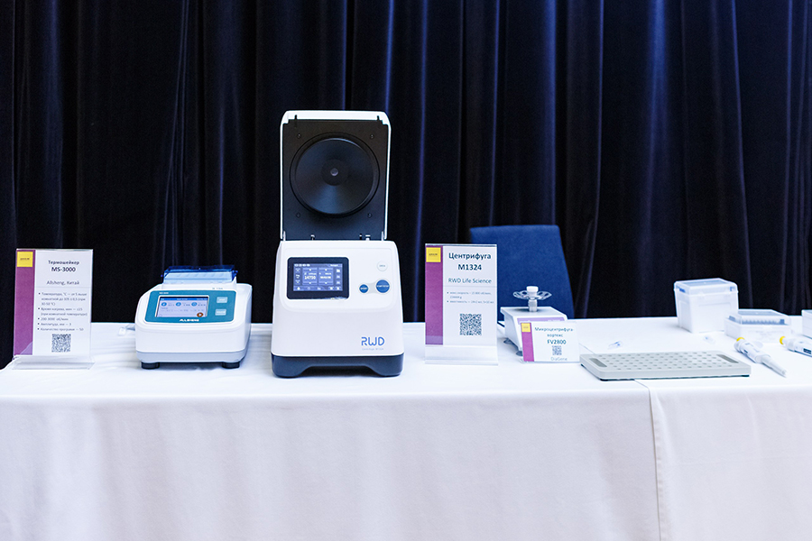 Выставка оборудования в секции молекулярной генетики объединила как классические инструменты (QuantStudio 5), так и новые системы из Китая и Тайваня. Ассортимент приборов и оборудования был настолько разнообразным, что можно было укомплектовать лабораторию молекулярной генетики с нуля, полностью закрывая все потребности.